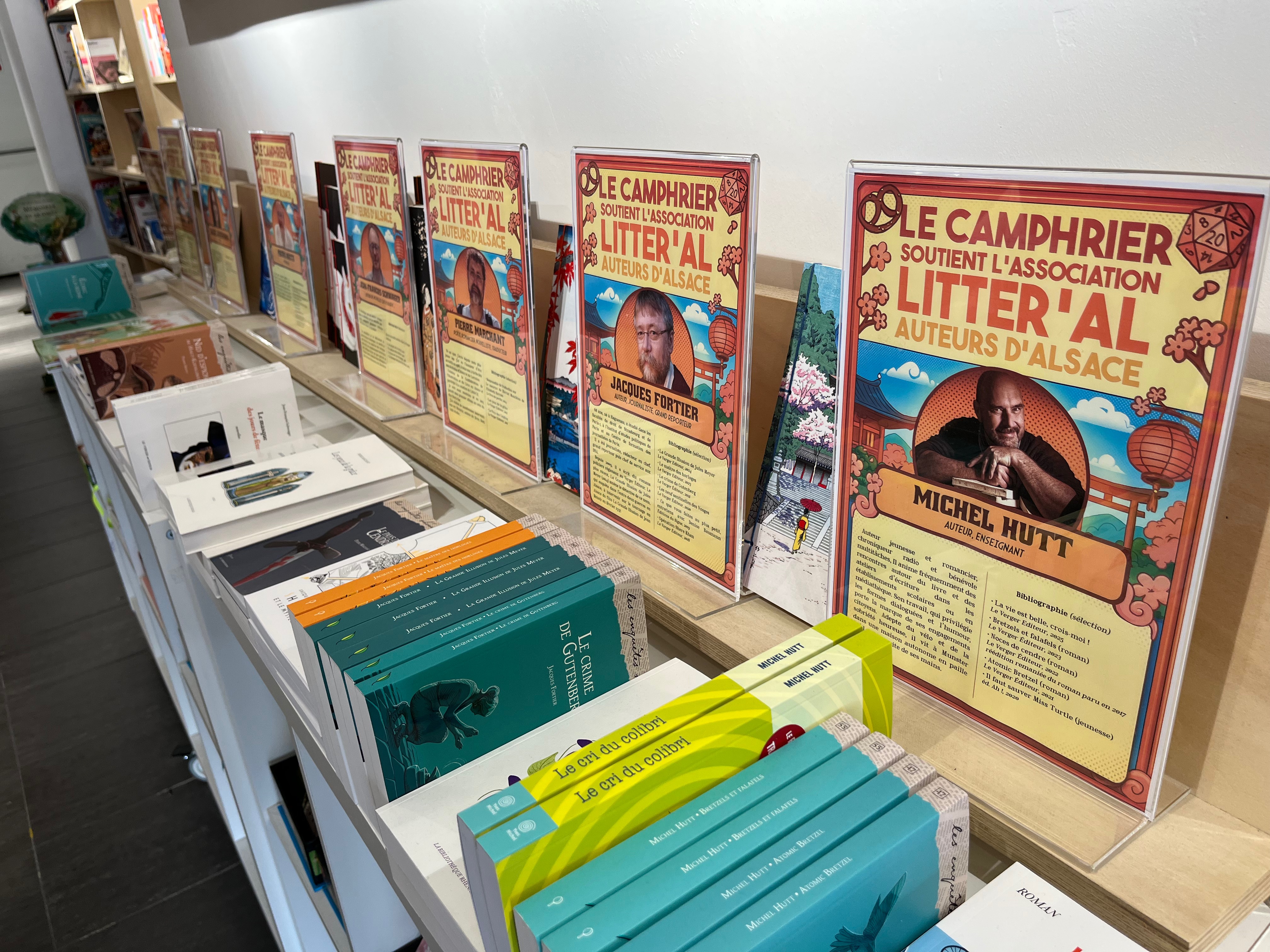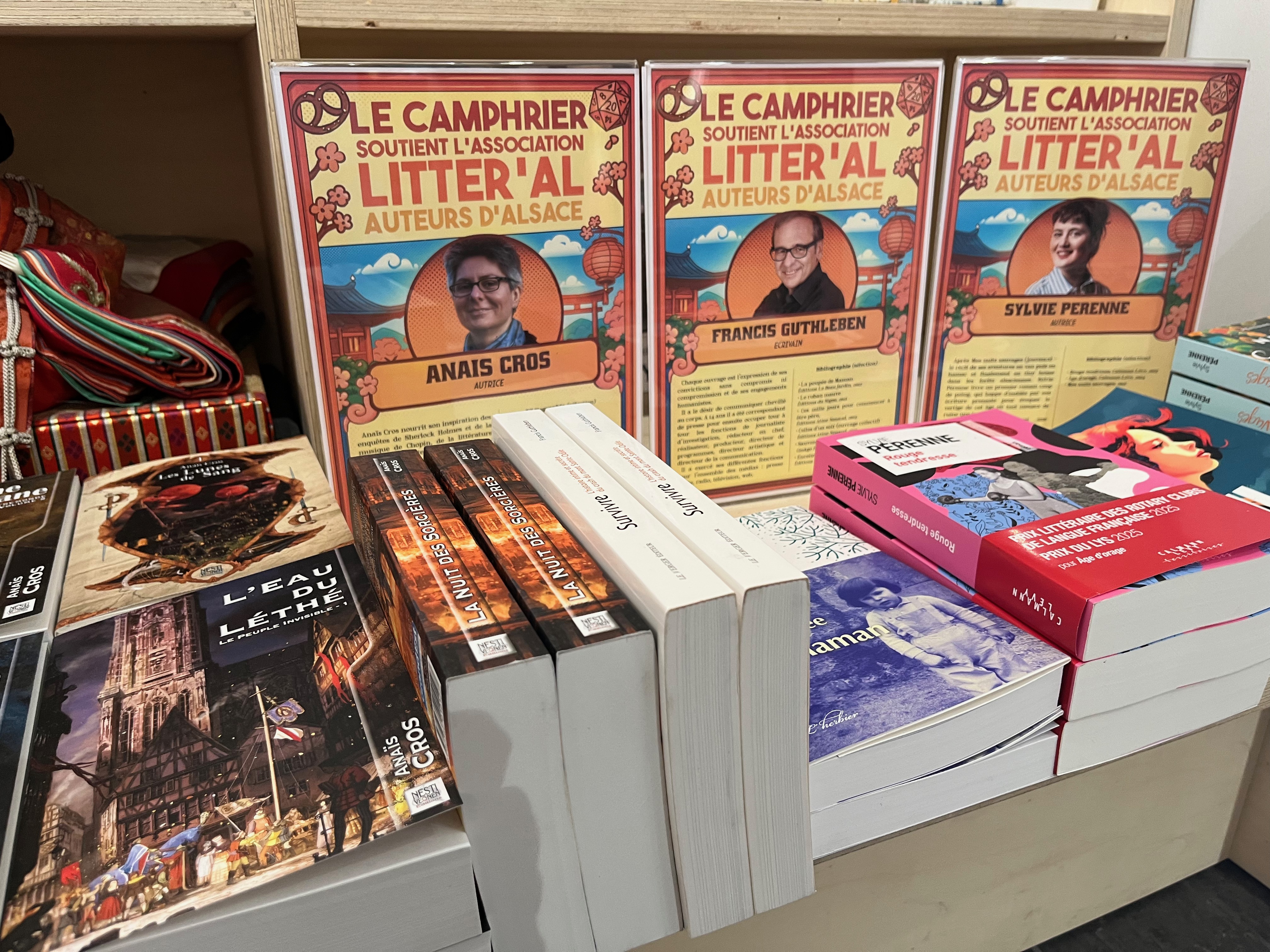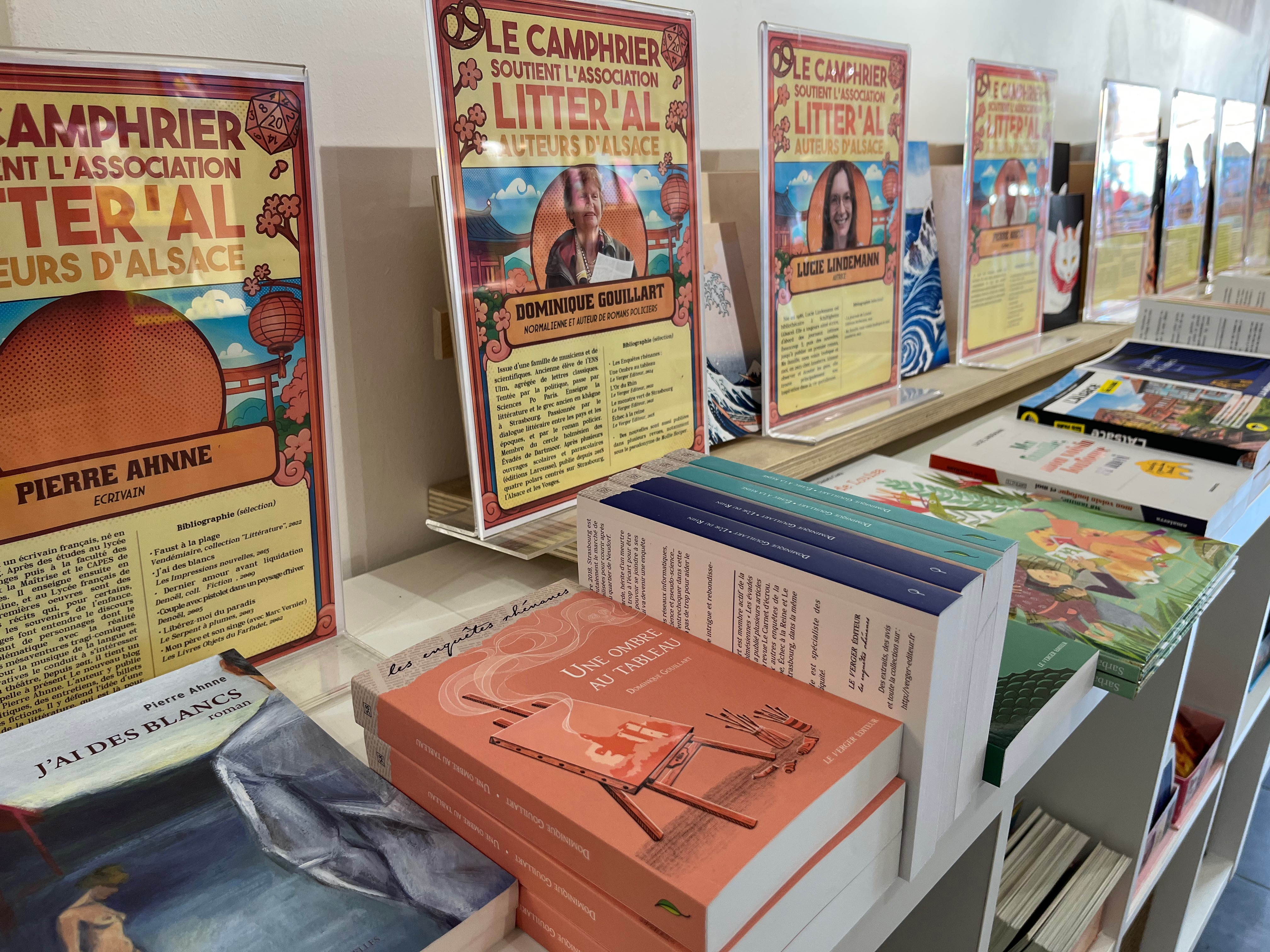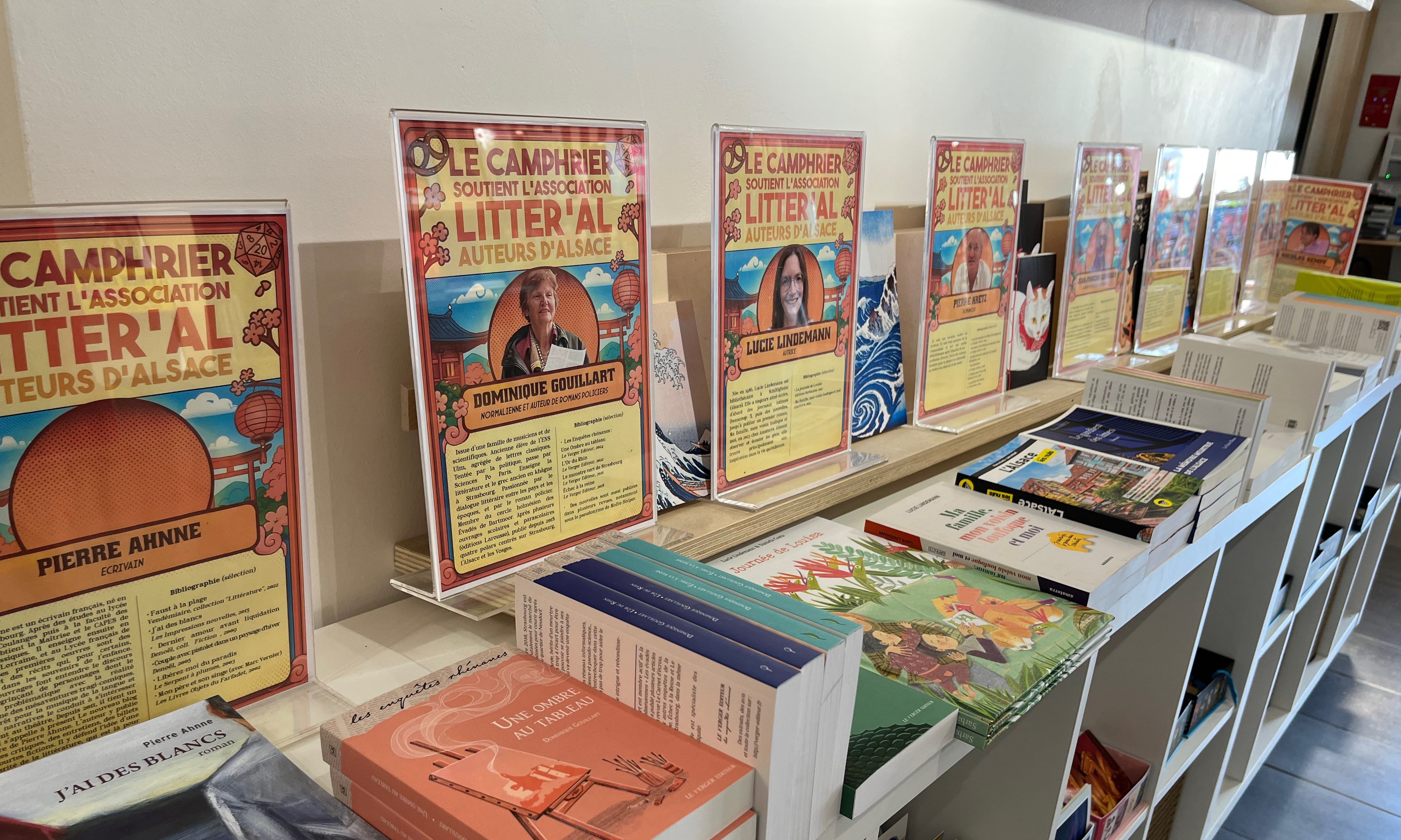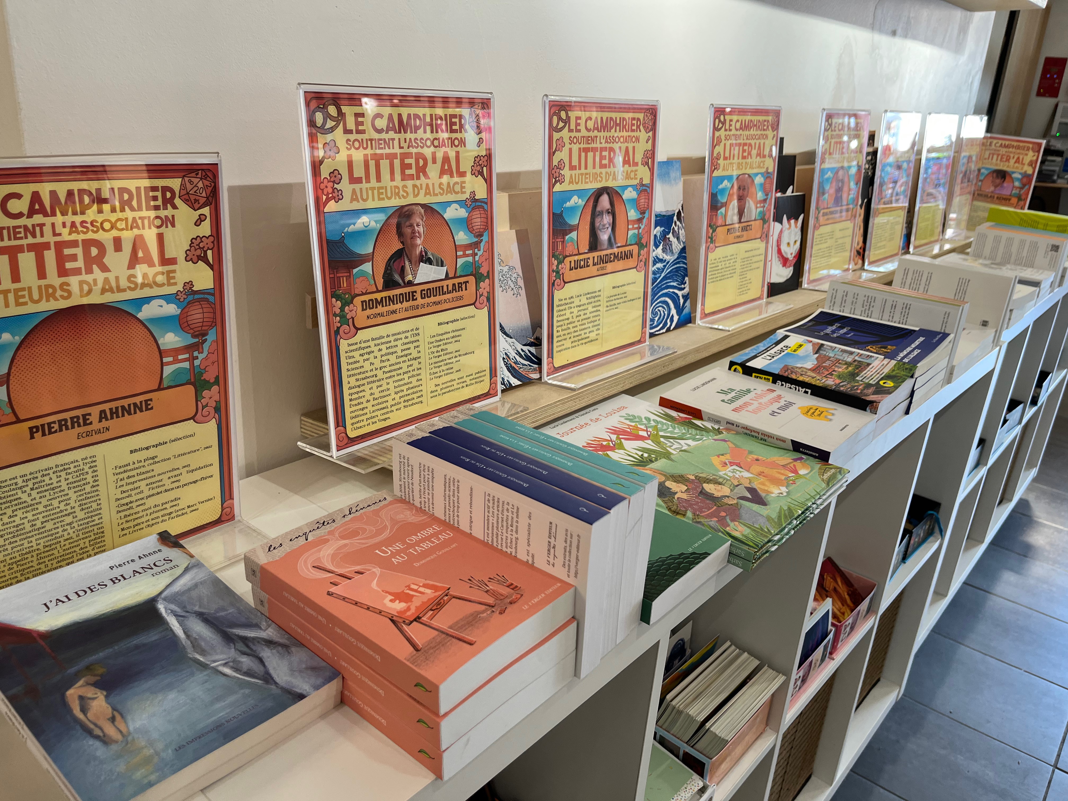 Marie-Pascale Perrot-Dunis, membre de Littér’Al, et son équipe ont choisi de mettre en avant les auteurs de LIttér’Al dans leur librairie le Camphrier, 4 place Kléber à Strasbourg !
