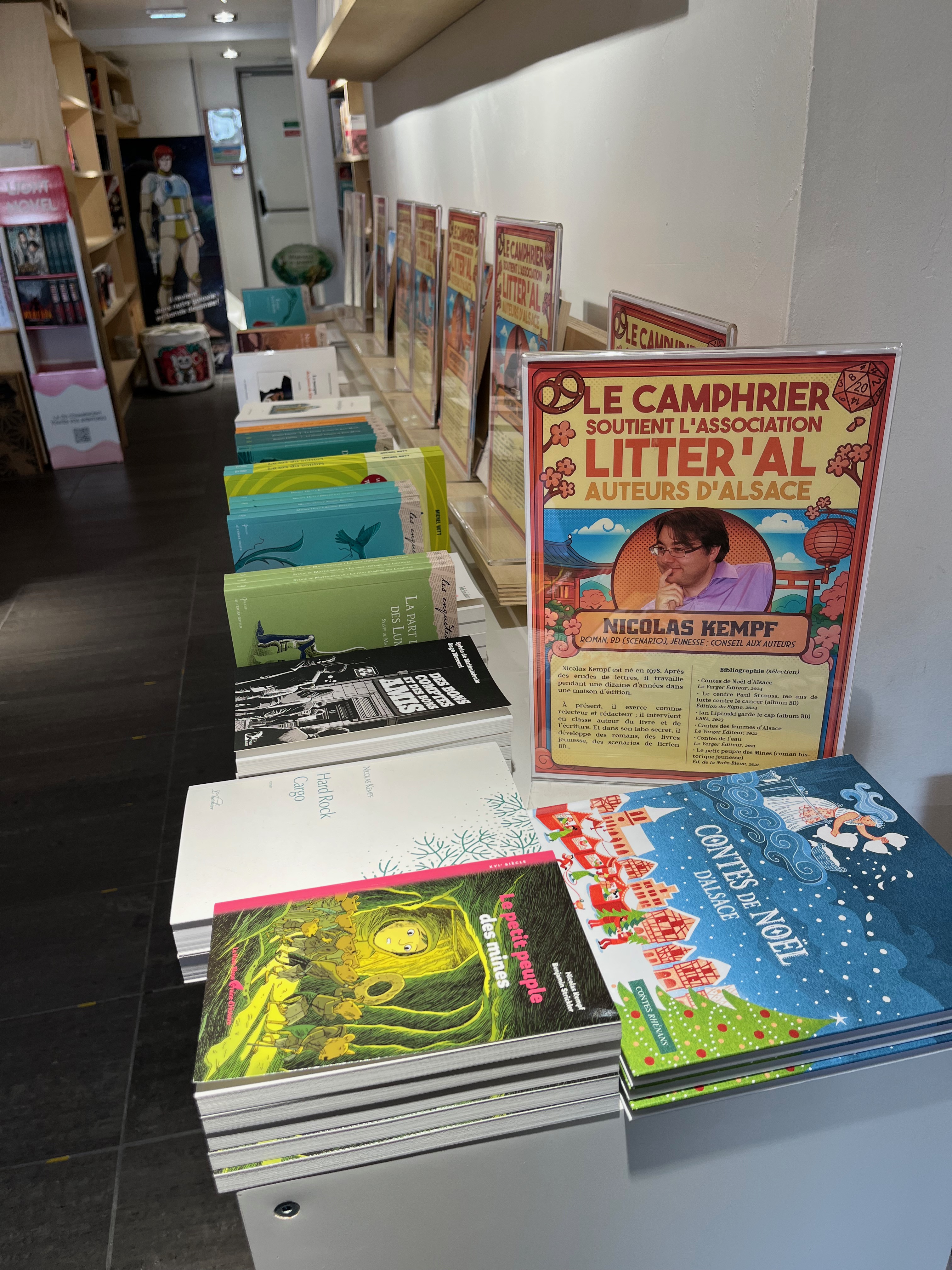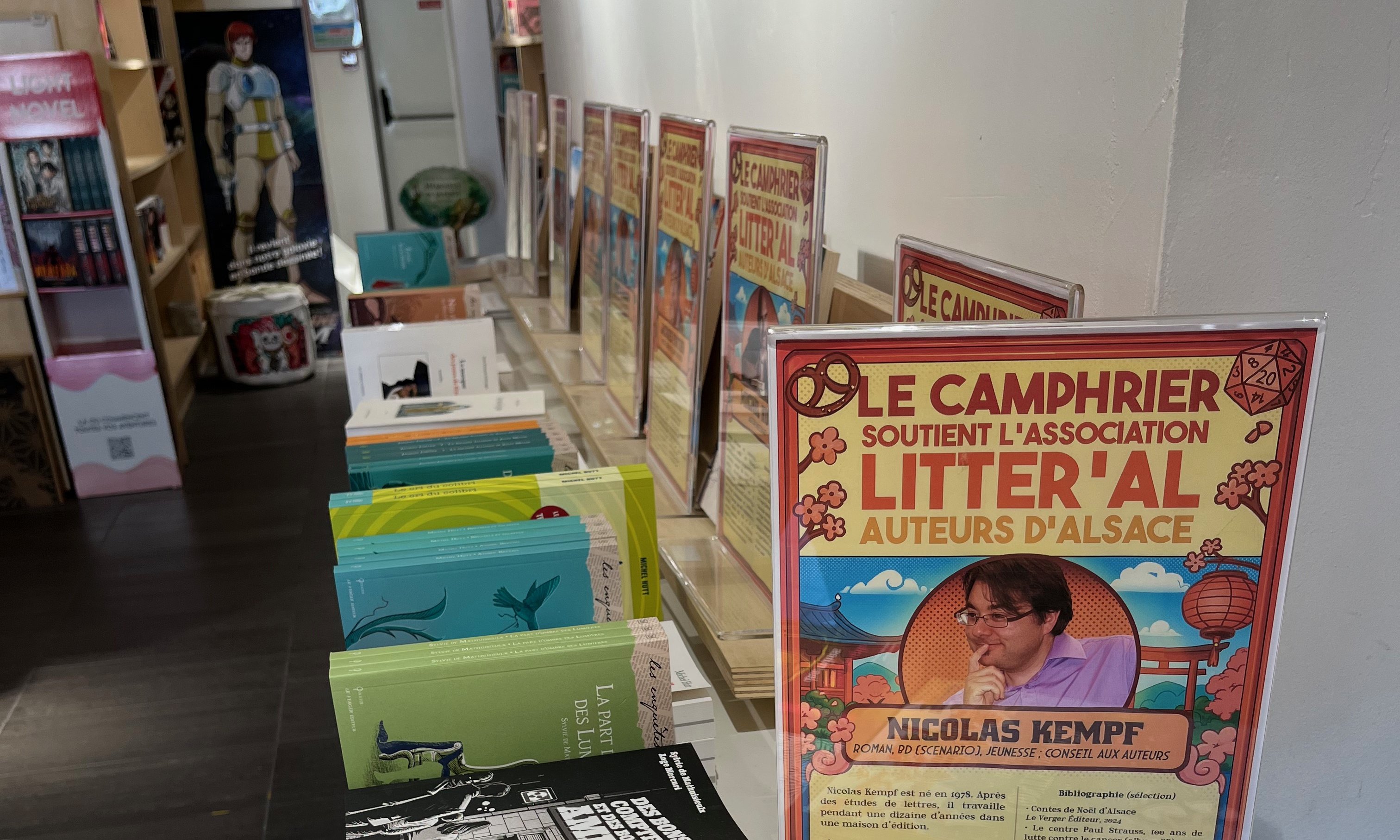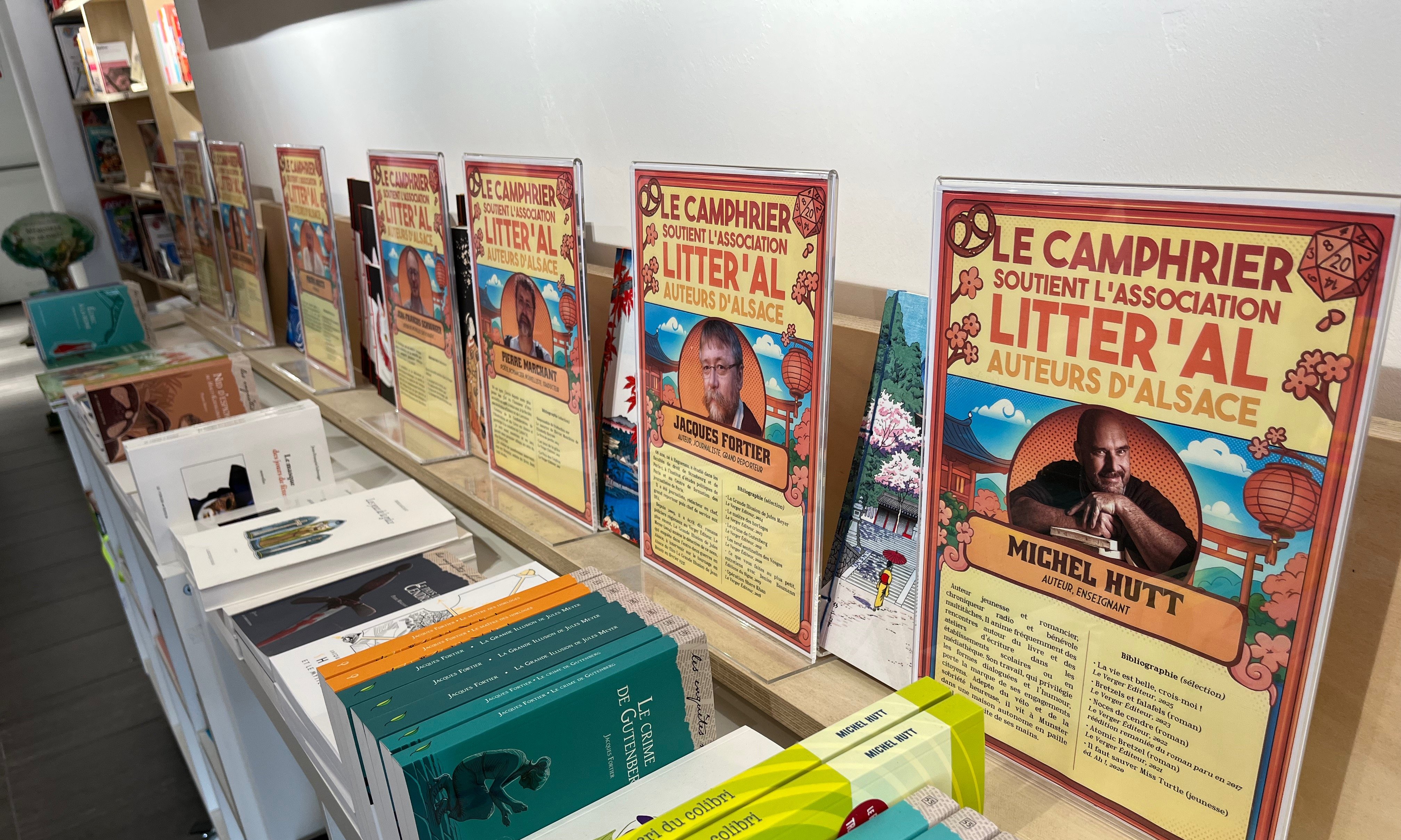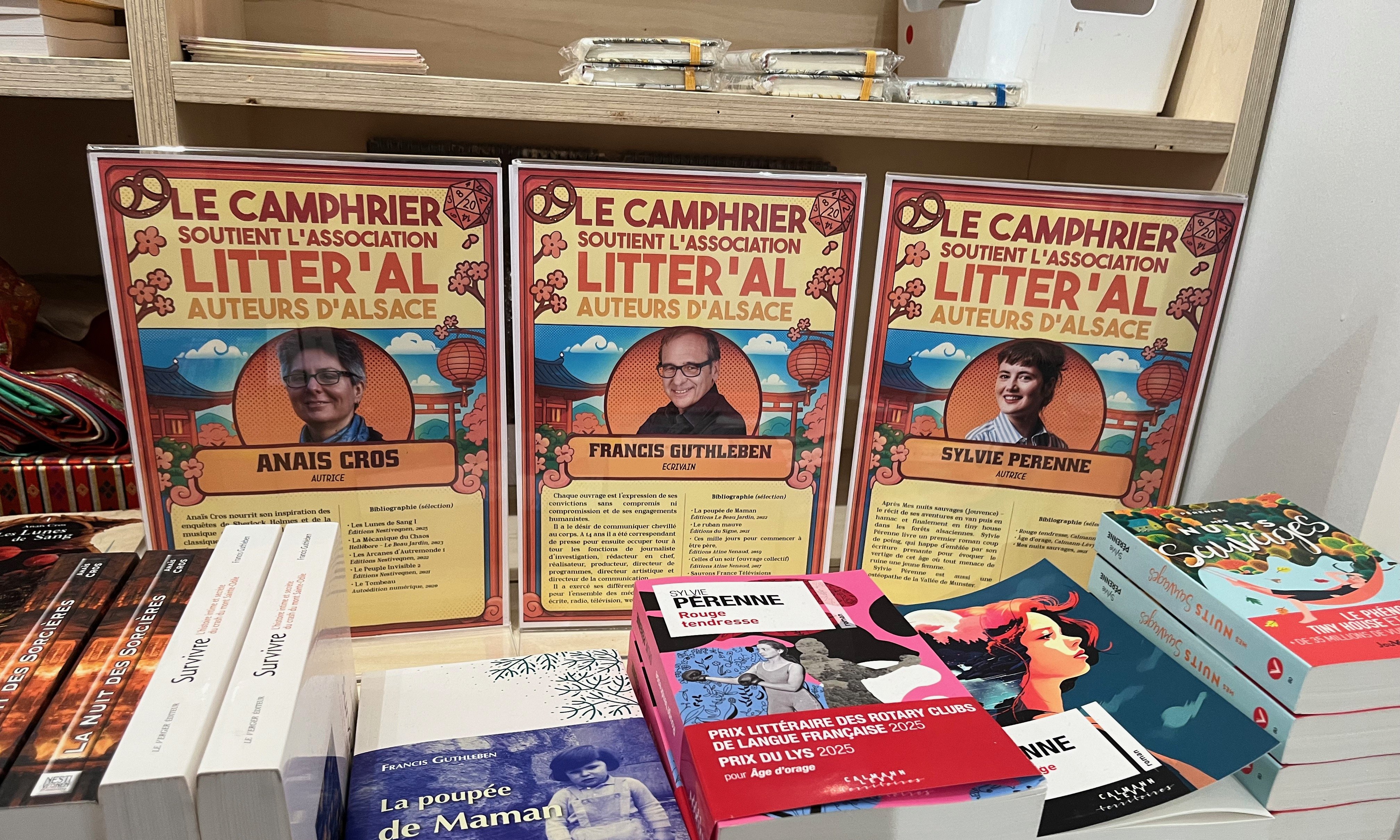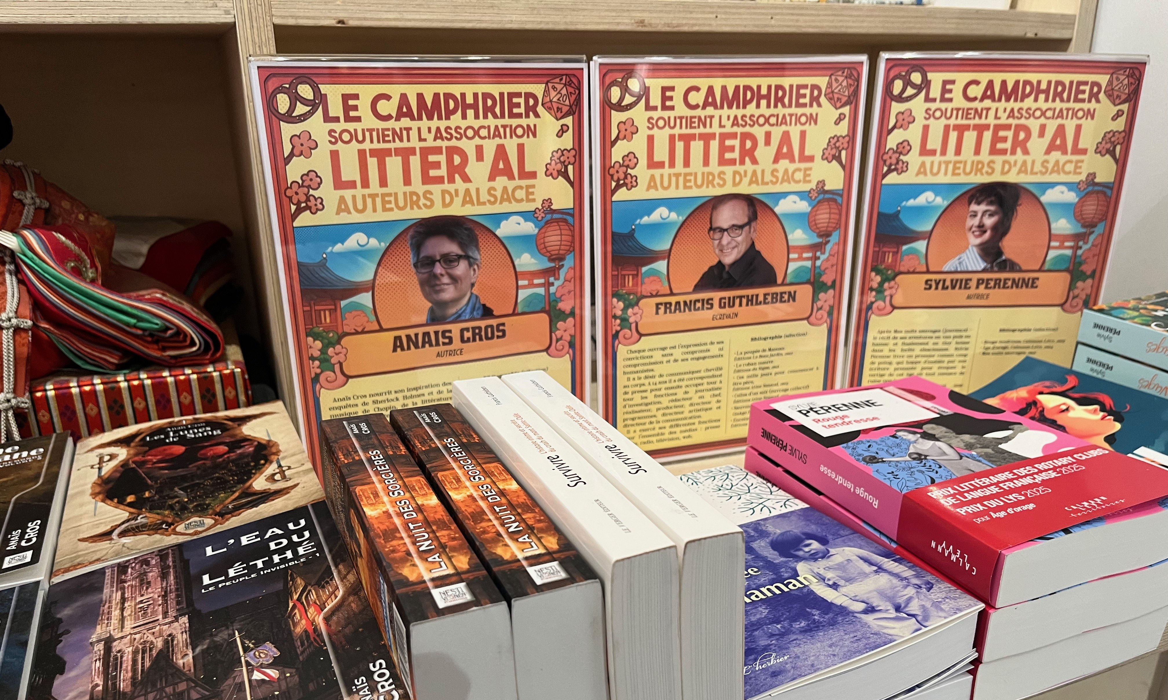 Marie-Pascale Perrot-Dunis, membre de Littér’Al, et son équipe ont choisi de mettre en avant les auteurs de LIttér’Al dans leur librairie le Camphrier, 4 place Kléber à Strasbourg !
